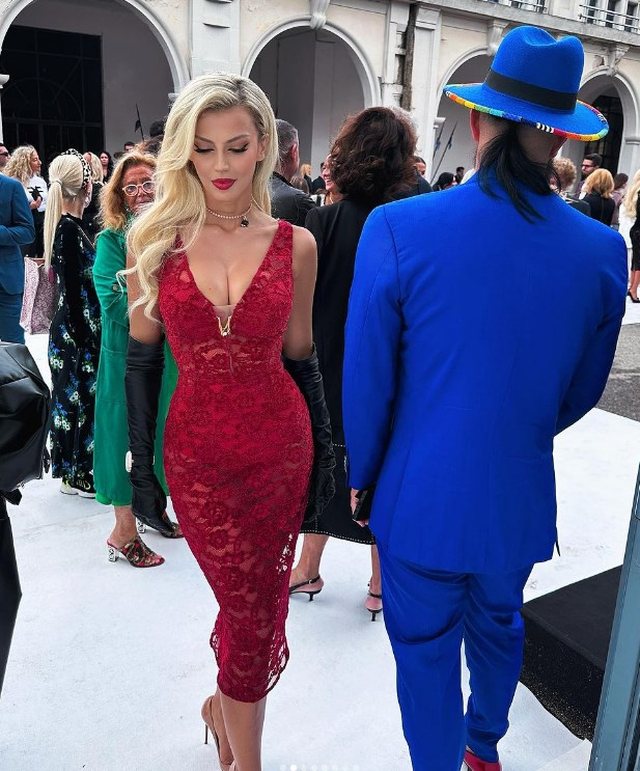 Marina Vjollca ka marrë vëmendjen e të gjithëve me paraqitjet e saj në Javën e Modës në Milano. Në daljen e fundit moderatorja dukej shumë elegante me një fustan të kuq e taka ngjyrë nude ndërsa lookun e kishte plotësuar me një orë me çmim marramendës.